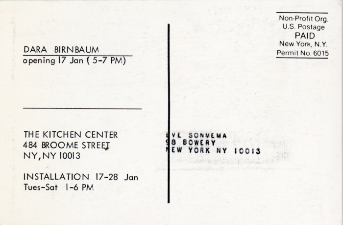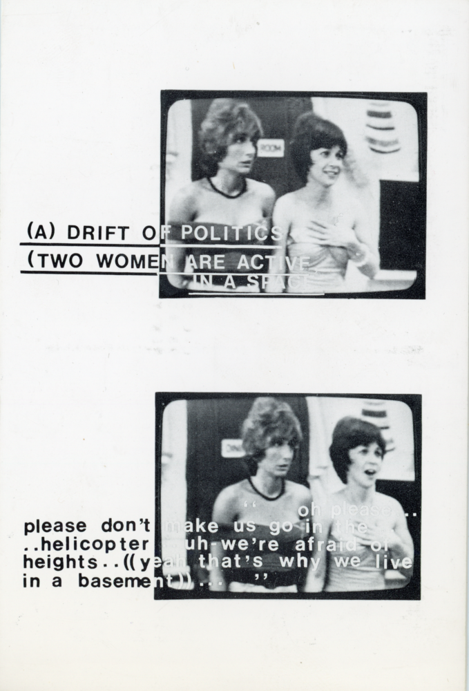 Dara Birnbaum, A Drift of Politics: Two Women Are Active In A Space, The Kitchen, Card, 1978