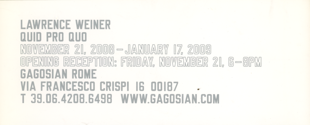, Gagosian Gallery (Rome), Card, 2008