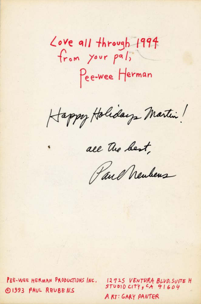 Pee-wee Herman (Paul Reubens), Holiday Greeting Card with Art by Gary Panter, SIGNED by Reubens, 1994