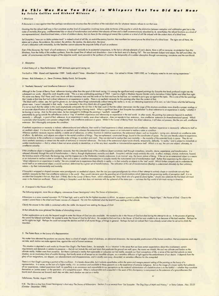 Salvatore Scarpitta, Exhibition Curated by Tricia Collins & Richard Milazzo, Greenberg Wilson Gallery, Double-Sided Poster with Essay by Curators on Reverse, 1990