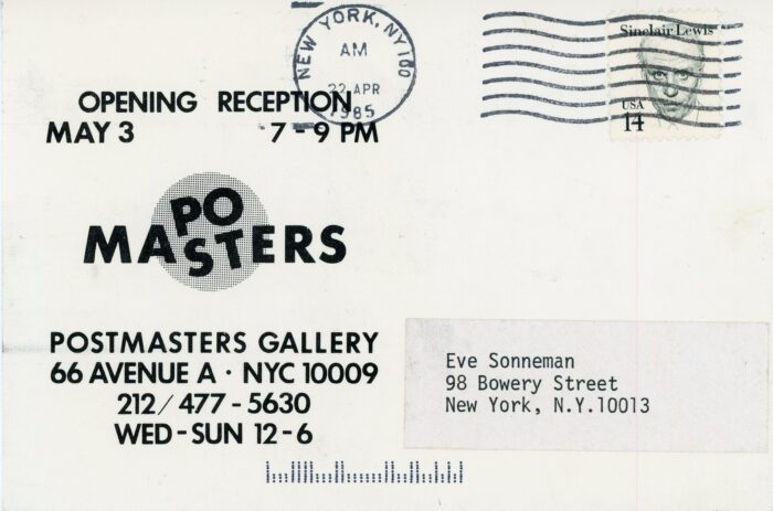 Postmasters Gallery, Halley, Koons, Longo, Paravision Curated by Collins & Milazzo, Card, 1985