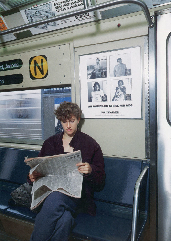 Postcard for Ann Meredith’s installation on the subway BREATH! Women, Children and AIDS with Public Art Fund, 1991. Photo by Peter Bellamy.