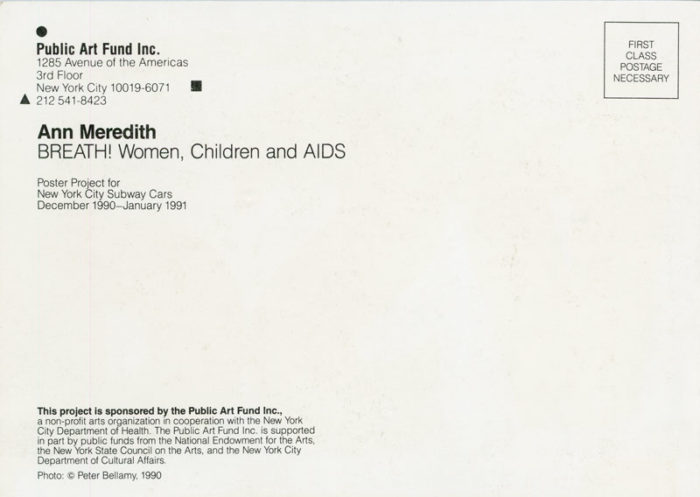 Ann Meredith, Public Art Fund, BREATH! Women, Children and AIDS, Card, 1991