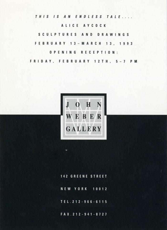 Alice Aycock, Sculptures and Drawings, Card, John Weber Gallery, 1993