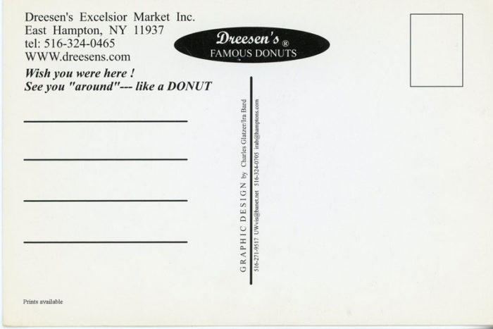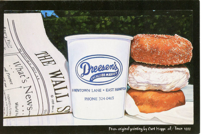 Postcard for Dreesen’s Famous Donuts, featuring Curt Hoppe’s Sugared, Powdered & Plain painting, 1999.