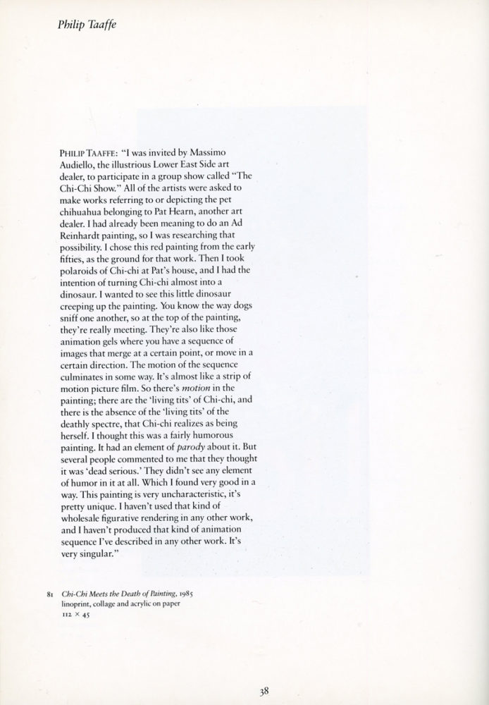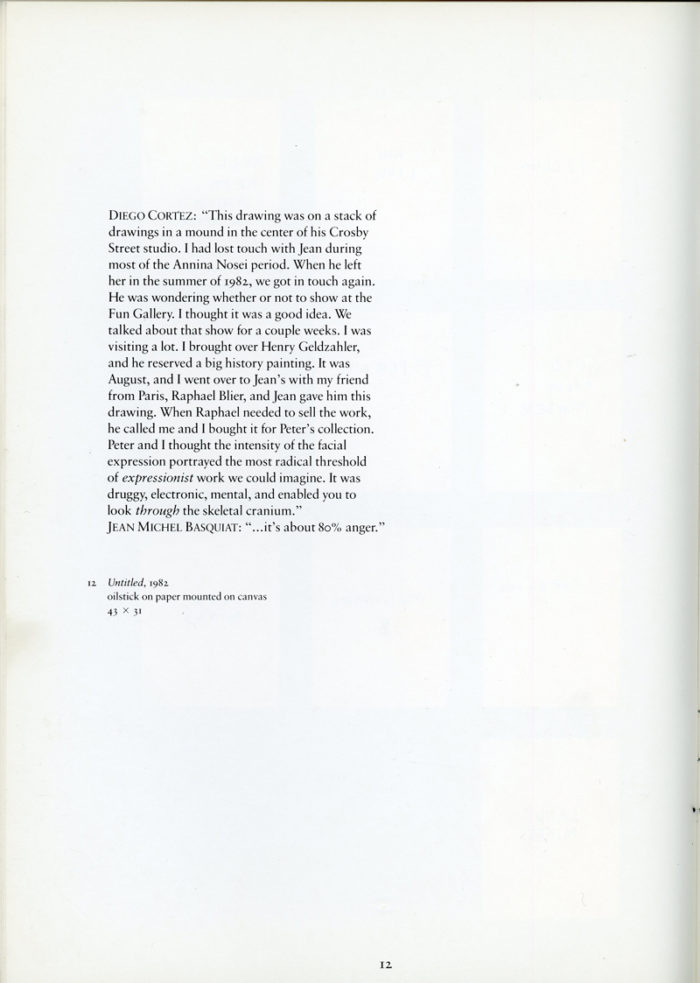 50-page catalogue highlighting Peter Brams’ collection of works by Jean-Michel Basquiat, Gilbert & George, Milan Kunc, David McDermott, Peter McGough, Philip Taaffe, and Rosemary Trockel. Published in 1986. Includes short transcriptions of interviews with the artist by Diego Cortez, who helped Peter Brams put together this collection