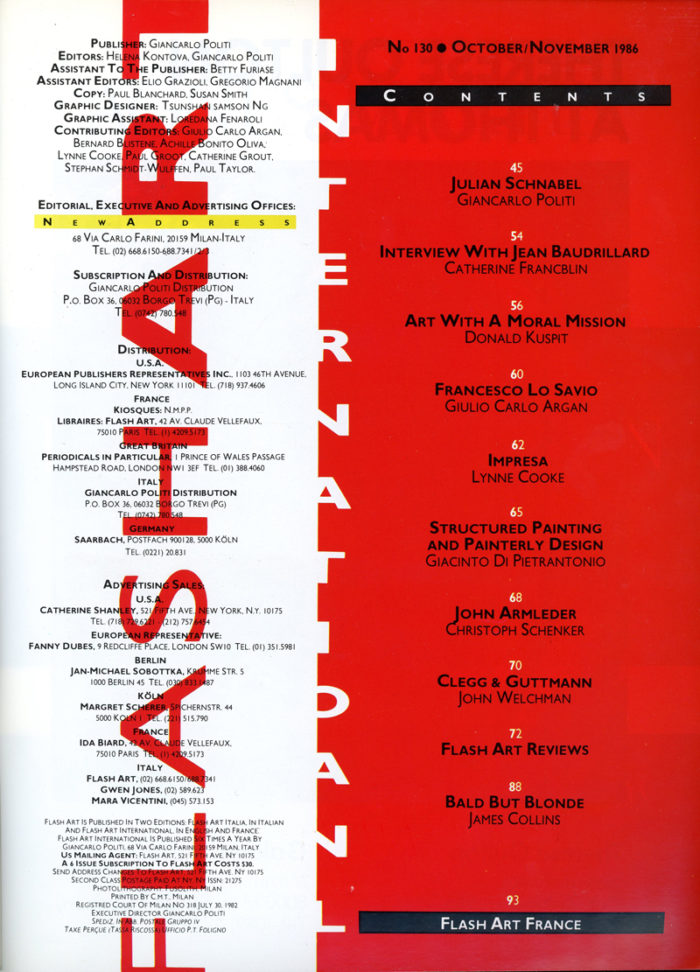 Flash Art No. 130, with Julian Schnabel cover. October/November 1986.