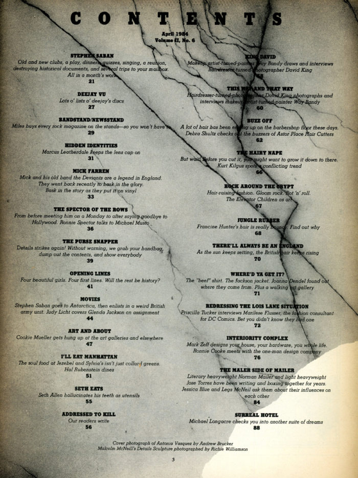 April issue, Volume II No. 6, of DETAILS Magazine, 1984.