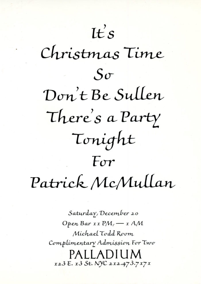 Palladium, Patrick McMullan, Christmas Party, Folded Card, 1986