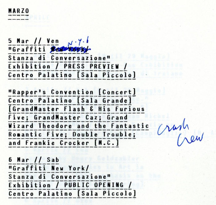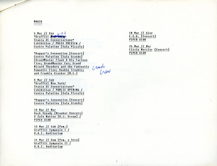 Diego Cortez, City of New York Festival In Rome, SIGNED by Diego Cortez and Fab 5 Freddy, Outline Proposal, 1982. 6 pages.