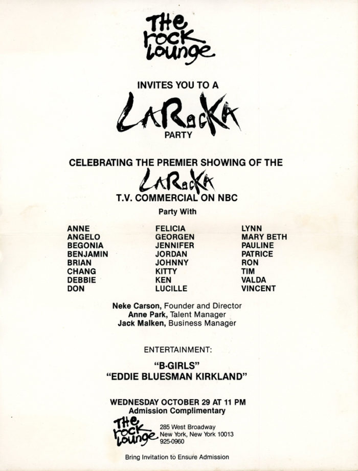 The Rock Lounge, LaRocka Party, Neke Carson, Folded Card, 1980