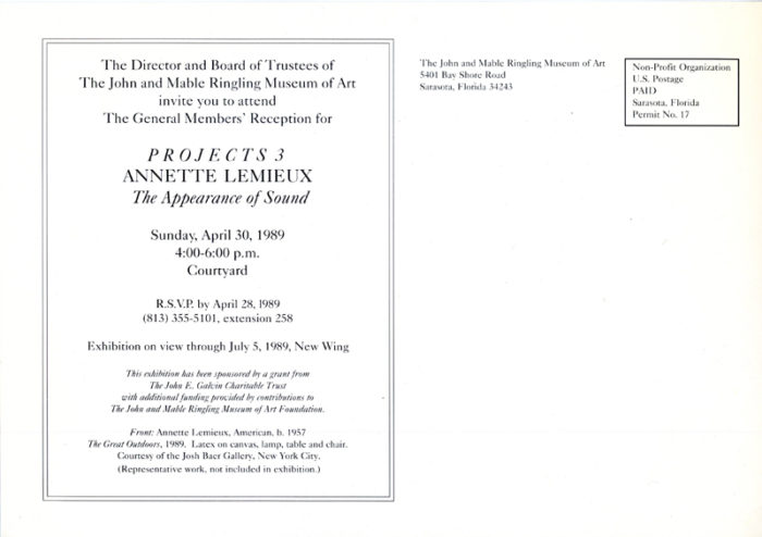 Ringling Museum of Art, Annette Lemieux, The Appearance of Sound, Card, 1989.