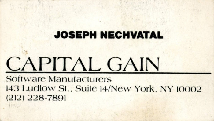 Printing business cards was so inexpensive that sometimes a passing fancy could make its way to print. Artist Joseph Nechvatal has no memory whatsoever about what he was planning when he created this card c. 1986.