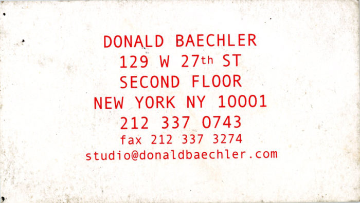 Gallery 98 presents a selection of some of the art-world business cards in our inventory. The links below lead to other art ephemera connected to the artists and galleries featured in the cards.