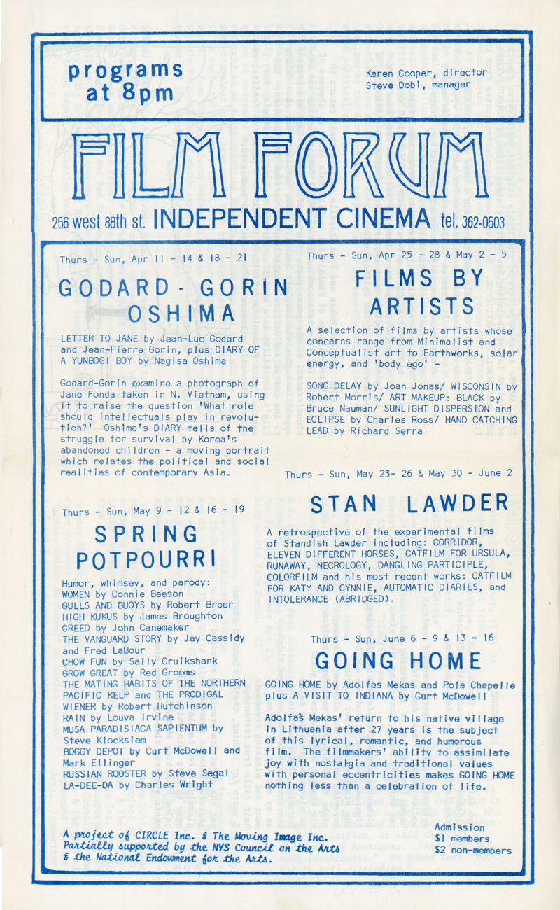 Film Forum Independent Cinema, Volume 1 No. 4, Folded 6-Page Newsletter, 1974