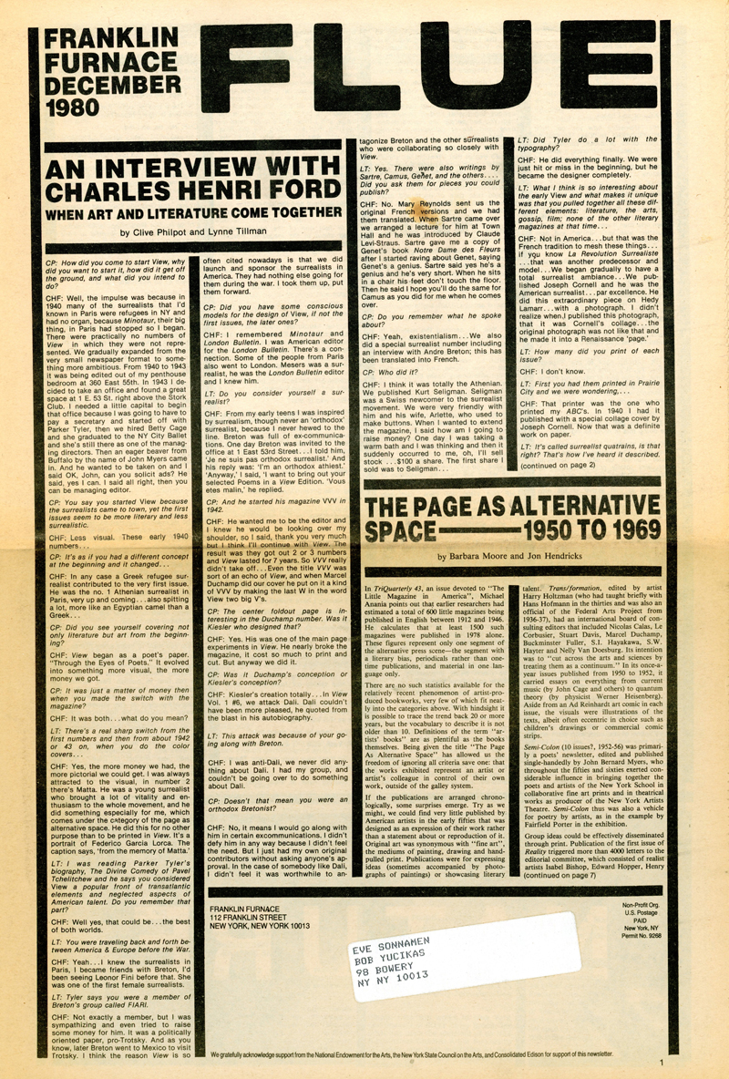 Franklin Furnace, FLUE, Volume 2 Number 1, Magazine, 1981
