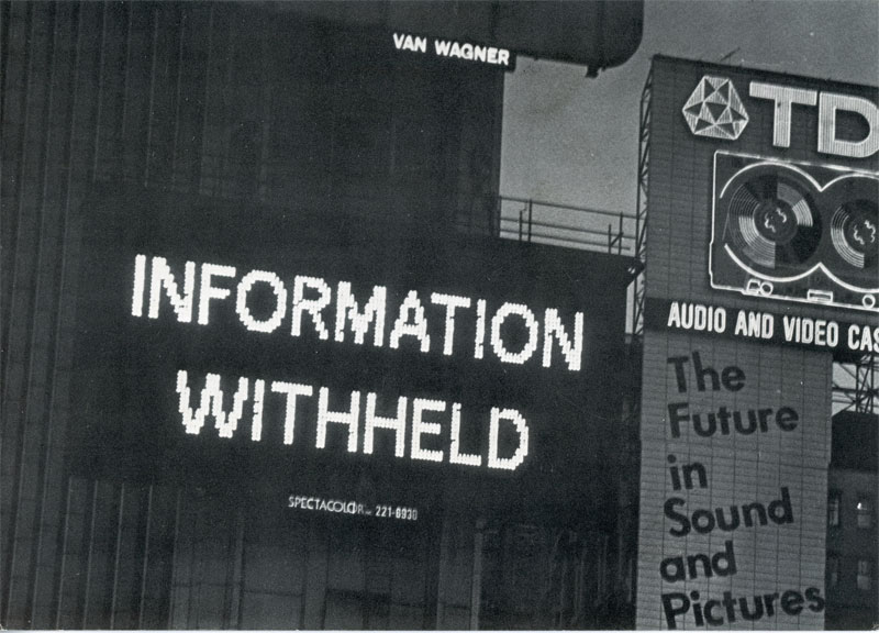 Becky Howland, Sprectacolor Lightboard in Times Square, Card, Public Art Fund, 1987
