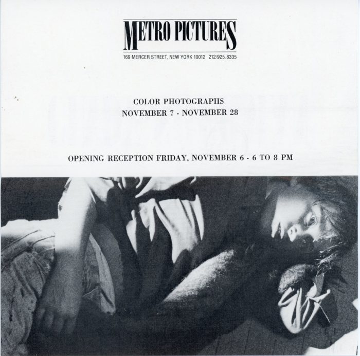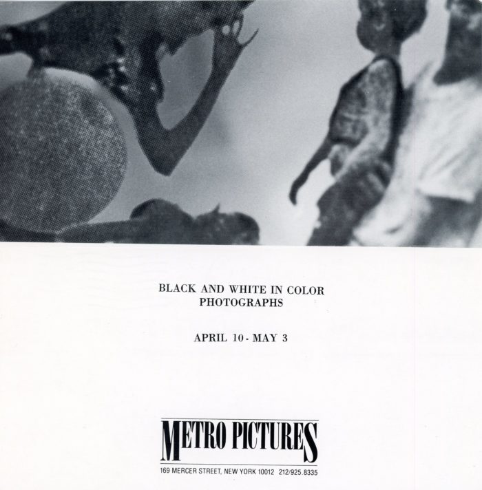 Metro Pictures, Richard Prince, Black and White in Color Photographs, Folded Card, April 10 – May 3, 1982. Size: 7 x 7 inches.
