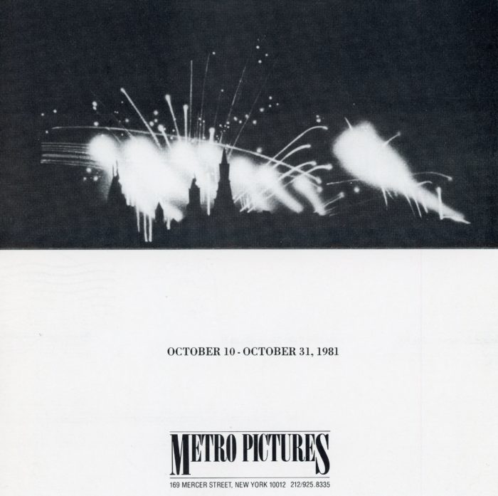Metro Pictures, Jack Goldstein, Folded Card, October 10 – October 31, 1981. Size: 7 x 7.25 inches.
