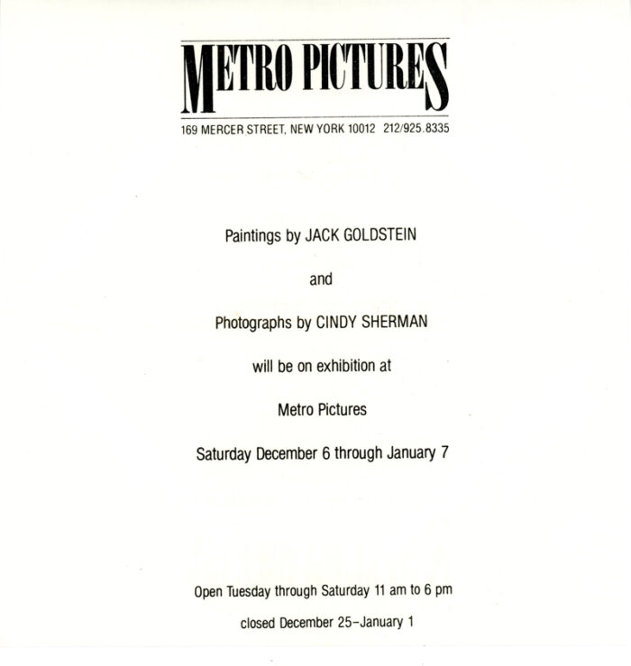 JACK GOLDSTEIN, CINDY SHERMAN, December 1980