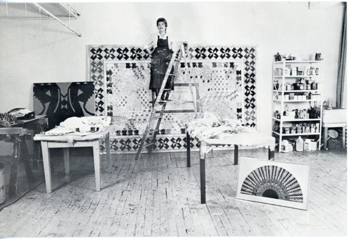 In the early 1970s Schapiro (1923-2015) emerged at the forefront of the feminist art movement partnering with Judy Chicago in the establishment of the Feminist Art Program at California Institute of the Arts, and in the creation of Womanhouse in Downtown Los Angeles. As a leader of the Pattern and Decoration movement Schapiro enjoyed enough success by the mid-1970s to afford her own studio. According to one biographer, Schapiro’s studio was more than a workspace. It also had a symbolic meaning for her — a room of her own where she could fulfill her dreams free of the constraints of gender roles.