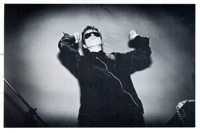 Hunter College Art Gallery, ENDGAME: Strategies of Postmodernist Performance, Robert Morris, Laurie Anderson, Robert Longo, Card 1984. Photo of Laurie Anderson is by Paula Court.