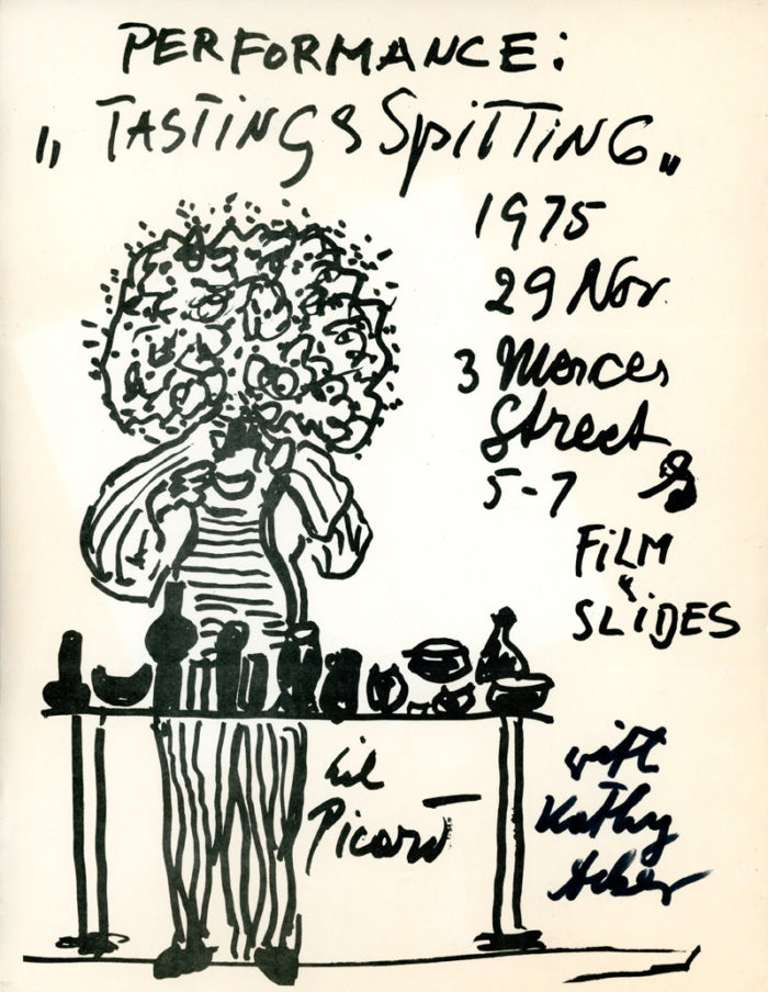3 Mercer Street, Lil Picard, Kathy Acker, Tasting & Spitting, Xerox Flyer, 1975.