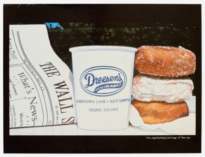 Curt Hoppe, Dreesen’s Market (East Hampton), “From original painting by Curt Hoppe oil/linnen 1999,” SIGNED Poster from an edition of 250, 1999. Size: 21 x 27 inches — Request Price