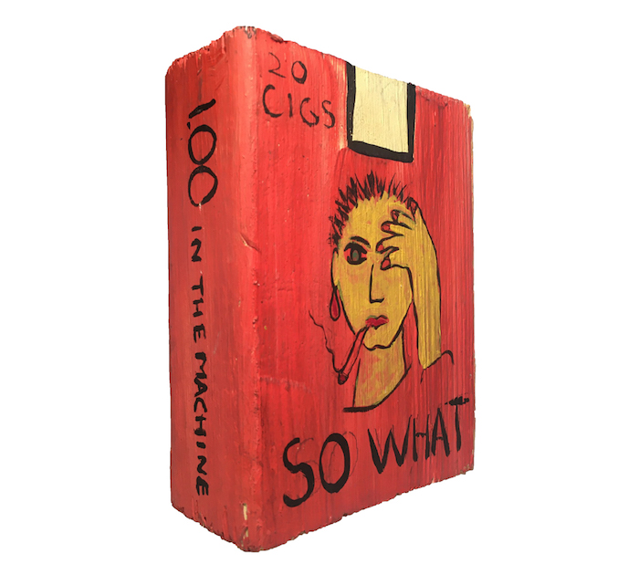 One of the most successful parts of the Times Square Show was the artist- run gift shop featuring low priced multiples. COLAB repeated this format downtown in Soho just a few months later for Christmas. Kiki Smith was one of the principle organizers of this first A More Store on Broome Street. She also contributed a number of multiples including satirical cigarette packs made out of painted blocks of wood. During the first half of the 1980s the A More Stores became a holiday tradition; many of the artist-made items sold there are available at Gallery 98.
