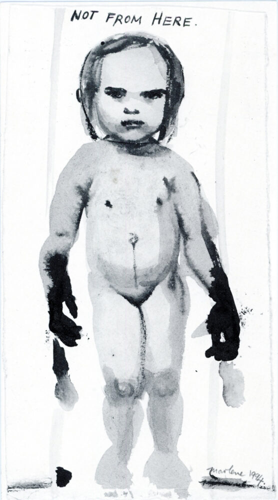 The Painter is a depiction of Dumas’ five-year-old daughter Helena with her hands covered with paint. Dumas’ art is about the human condition. She examines every phase of life from pregnancy to death and represents every race and every type of person. Her work is about both appearances and feelings.