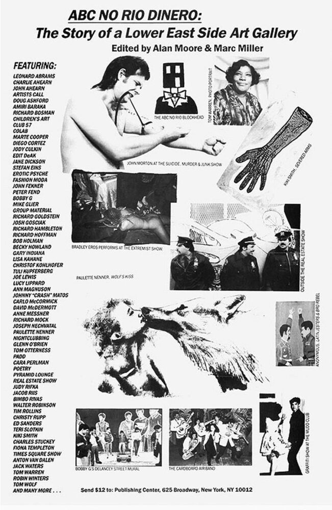In 1985, Alan W. Moore, one of the original founders of the gallery, collaborated with Marc H. Miller on the book ABC No Rio Dinero: The Story of a Lower East Side Art Gallery, much of which is now posted online. No one would have guessed that these were only the first five years of an unbroken forty-five-year history. In 2025, Moore will organize an exhibition at the Emily Harvey Foundation that will spotlight No Rio’s complete history. Soon after, in late 2025 or early 2026, ABC No Rio’s new building will be inaugurated. For those who were there at the beginning, this is a small miracle.