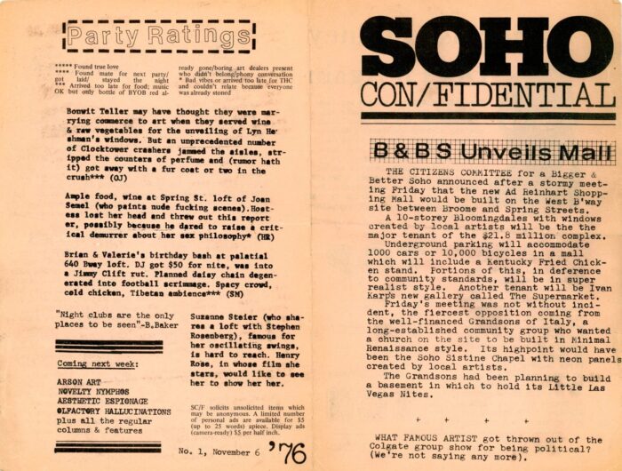 John Wilcock, SOHO Con/fidential, Xerox Newsletter, 1976