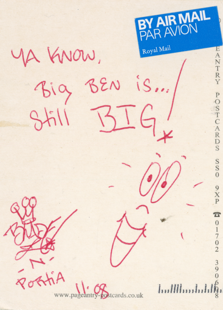 “Big Ben is still Big!,” postcard sent from London, November 2008