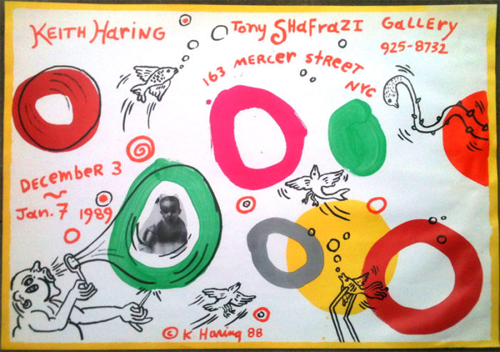 For this poster, made not long after his diagnosis with AIDS, Haring pasted his own baby picture inside an image of an about-to-burst soap bubble: a frank metaphor for the life that would be cut short barely a year later.