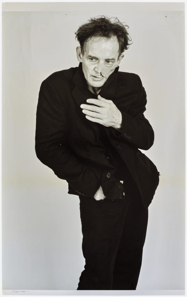 Curt Hoppe, Richard Hambleton (Large Version), Signed Photograph on Archival Paper, 2011. Size: 38 x 24 inches — Available for Purchase. This studio photograph of Hambleton was made in conjunction with Hoppe’s series Downtown Portraits, 2010-2019. It was the basis for his large, hyper-realist painting of Hambleton. While there is a small number of 11 x 14 inch prints of the photo in circulation, this is the sole large print of this iconic image.