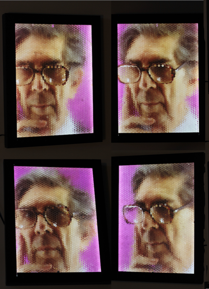 Portrait of Roger Lannes de Montebello, Integram 3D Photograph with new technology developed by M. Henry Jones, 1985-2005. Integram 3D Photographs reveal multiple views of the subject as the viewer’s position changes in relation to the picture. All of these images are of the same portrait seen from different angles.