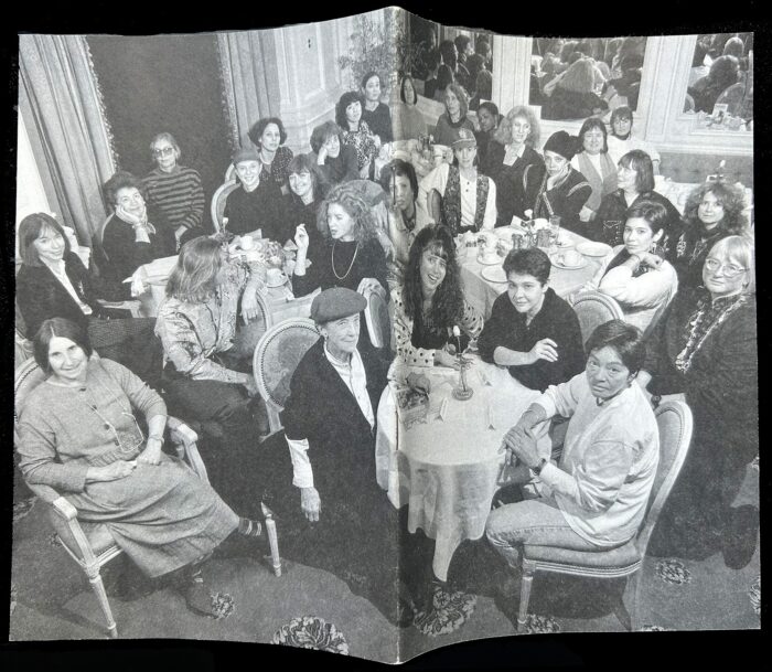 The photograph was taken by James Hamilton, but the idea for the group portrait and its staging was thanks to Mary-Ann Monforton, the exhibition organizer. The Algonguin Hotel, famous for its literary roundtable in the 1920s, lends a historic pedigree to this group of artists, while the tea-party setting both evokes Judy Chicago’s famous Dinner Party and provides a convivial atmosphere for a gathering of women.Co-curated by Monforton, Lucy Lippard and Lowery Stokes Sims, the 1991 benefit exhibition featured an outstanding group of women artists, all of whom have withstood the test of time. Not all the artists in the exhibition were able to attend the photo session but more than half did. The result is an extraordinary group portrait that has gone largely unseen since the benefit.