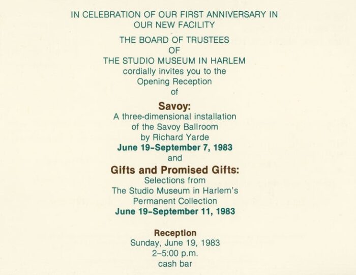 Invitation for the Inaugural Exhibitions at The Studio Museum’s New Building on West 125th Street, 1982