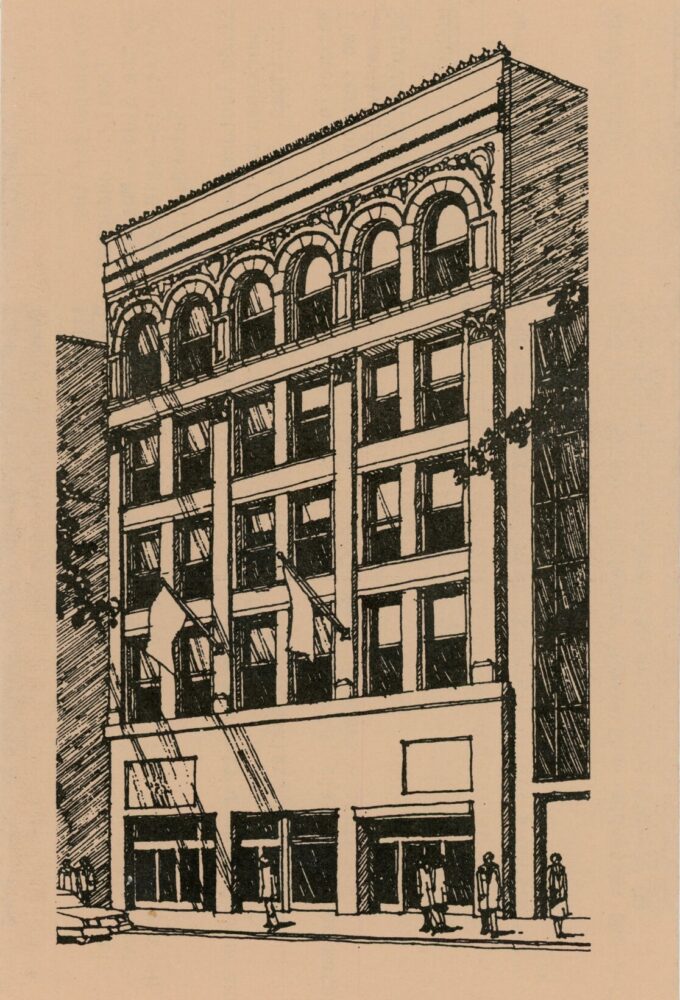 This sketch shows the 144 West 125th Street building that the Studio Museum first occupied in 1982. That structure has been demolished to make way for the new Studio Museum building that now occupies the plot.