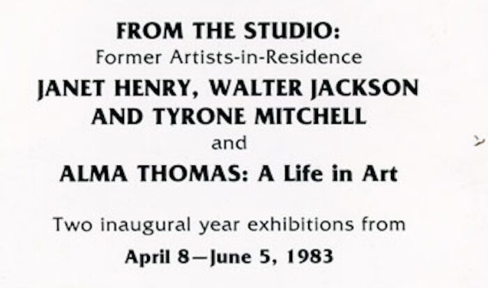 Studio Museum of Harlem, former artists in residence Janet Henry, Walter Jackson, Tyrone Mitchell; and Alma Thomas: A Life in Art, Card, April 8 – June 5, 1983. Size: 5 x 7.5 inches — Available