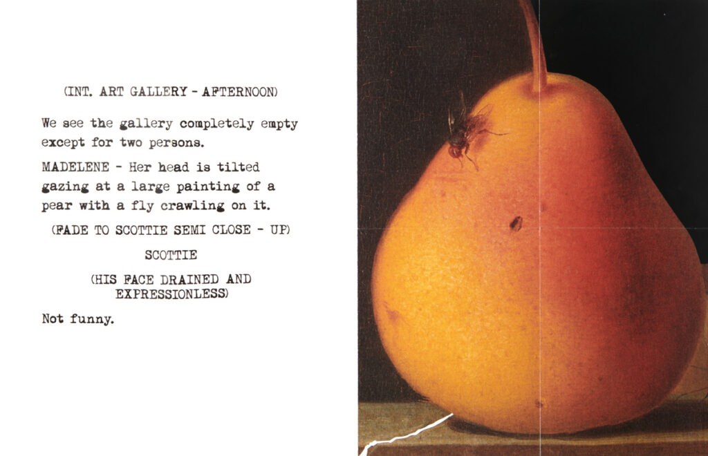 John Baldessari, Pictures & Scripts, Marian Goodman Gallery, Folded Poster, 2015. Conceptual artist John Baldessari began to explore the relationship between words and pictures back in the 1960s. Here, in a late career exhibition at the prestigious Marian Goodman Gallery, he creates fictional movie scripts that contextualize found images in unexpected ways.