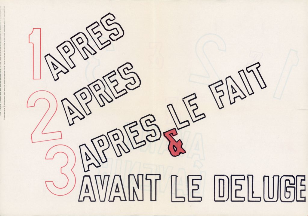 Lawrence Weiner, Two Folded Double-Sided Sheets made for Agnés B’s Point d’Ironie (No. 6), artist magazine, 1998. The publication, a free-form folio Point d’ironie was created to provide individual artists with the opportunity to create a work of art without restrictions. The publisher was French fashion designer agnès b. and the artists were selected by curator Hans Ulrich Obrist. For his folio, conceptual artist Lawrence Weiner (1942 – 2021) provided the following text: WHEN & IF AN OBJECT IS WHAT IT IS & NOT A METAPHOR FOR SOMETHING ELSE THIS OBJECT HAVING ARRIVED AT THE FACT IS NOT OBLIGATED IN ANY WAY TO TAKE A GIVEN DIRECTION.