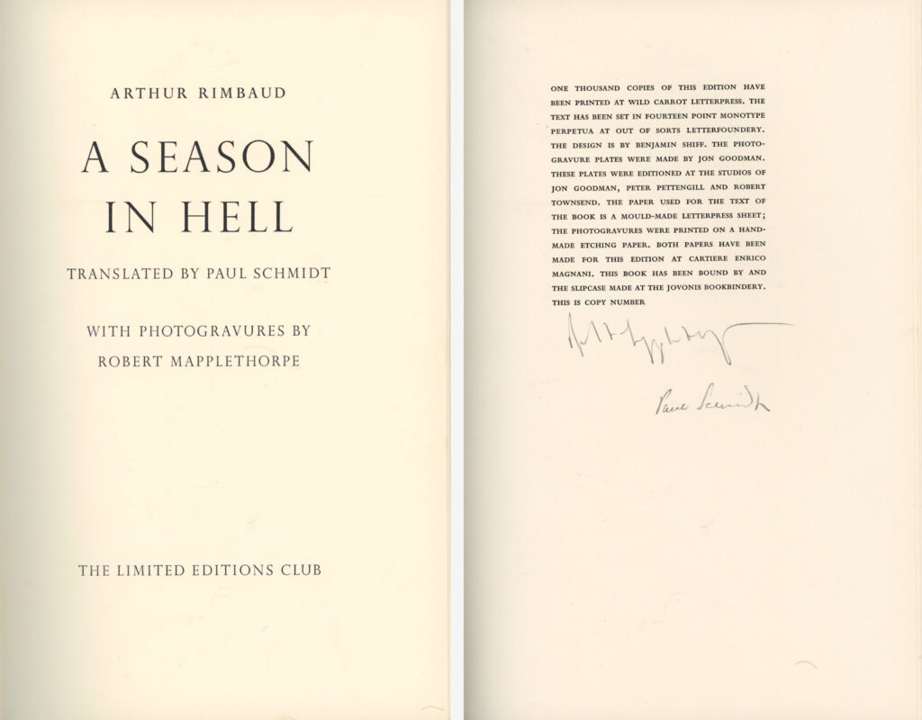Signed Edition of Arthur Rimbaud’s A Season in Hell, with Photogravures by Robert Mapplethorpe, 1986