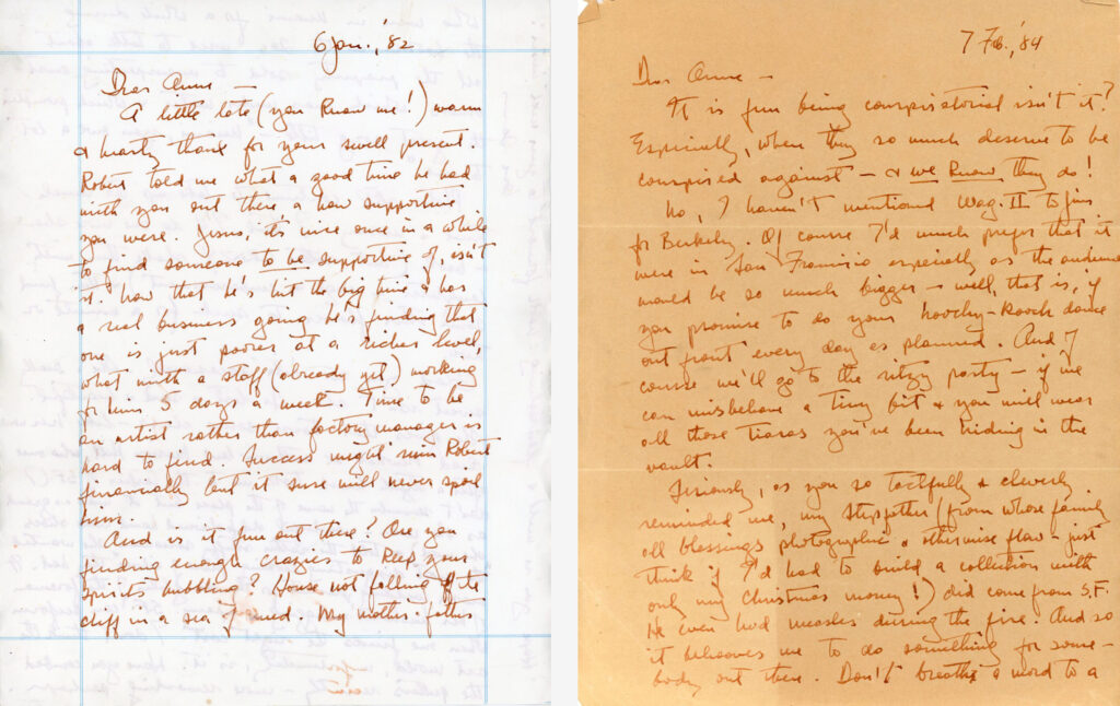 Anne McDonald first met Sam Wagstaff in the early 1970s when she was on the Board of Trustees at the Detroit Institute of Art where he was a curator. Wagstaff became MacDonald’s mentor, the person who inspired her to devote much of her life (and money) to supporting the most advanced contemporary art. In the letters that he wrote to her, Wagstaff talks about his passion for photography, his pride in the success of his partner Mapplethorpe, and also makes suggestions of art that might interest MacDonald.