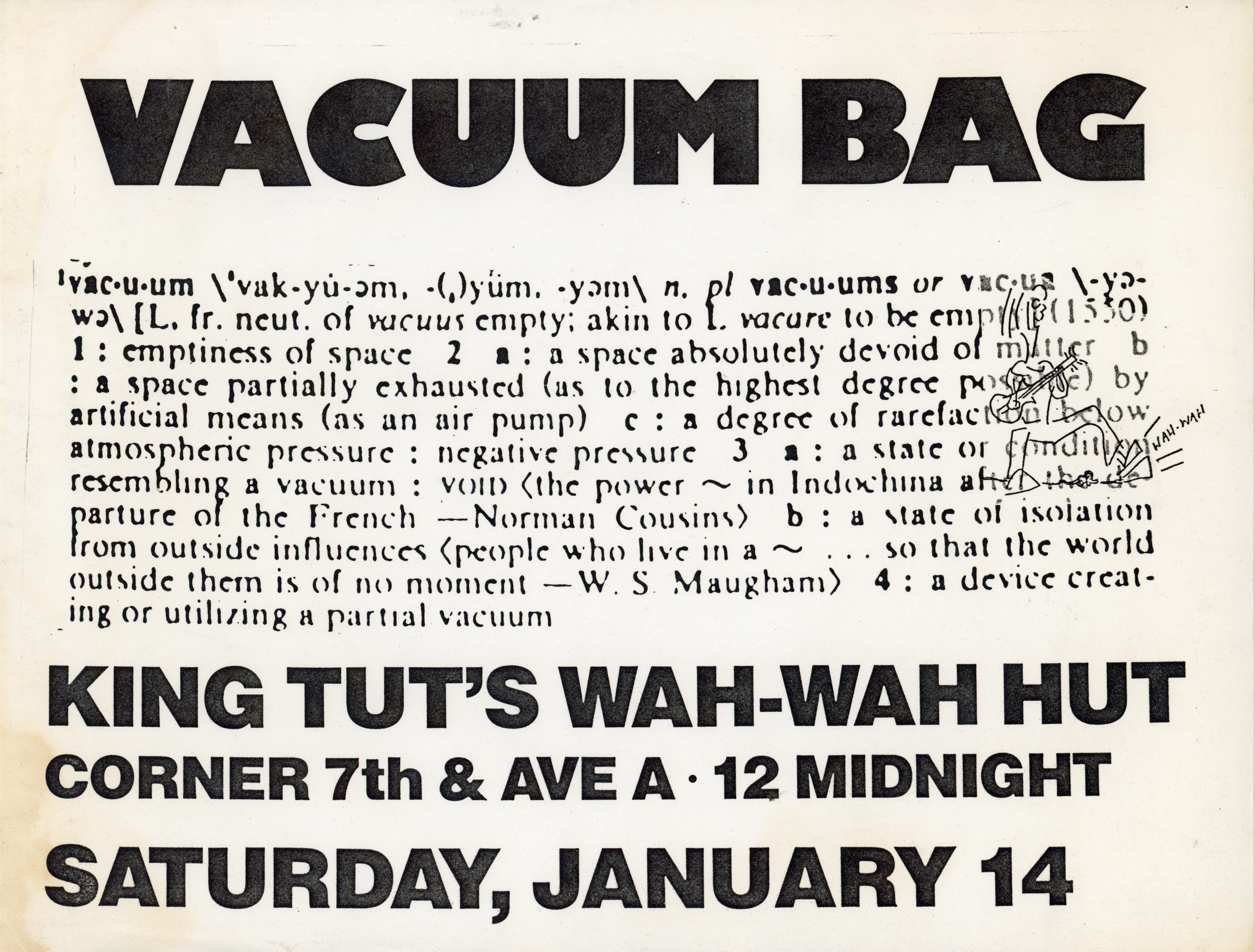 Vacuum Bag, King Tut’s Wah-Wah-Hut, Flyer, 1989