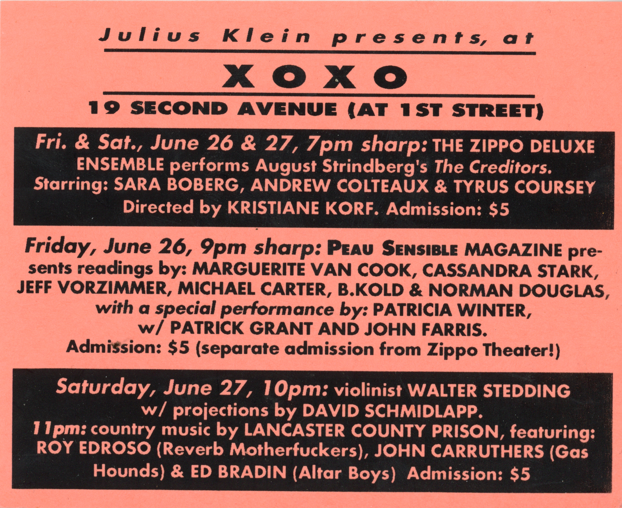 XOXO Gallery, Featuring Events with Taylor Mead, Steve Buscemi, Julius Klein, Card, 1993