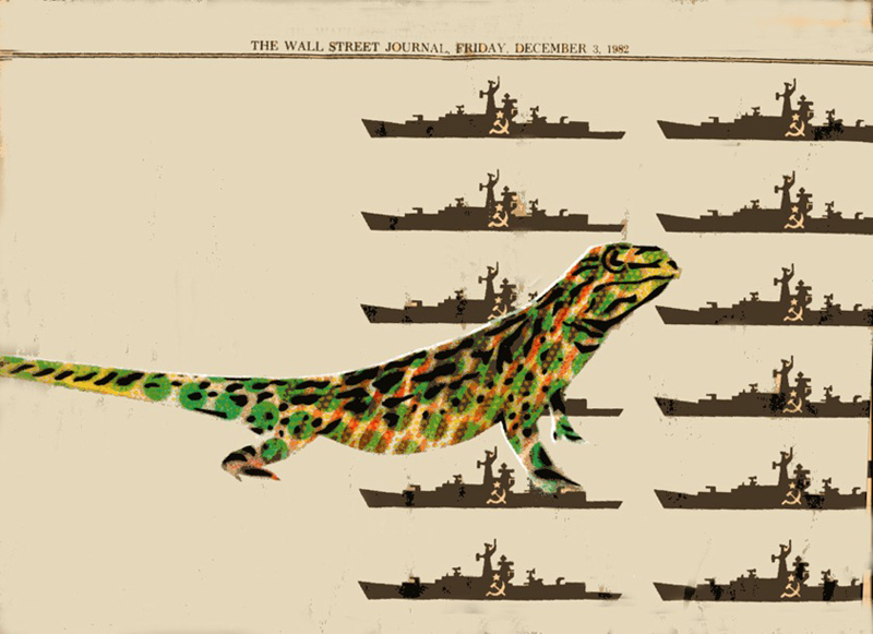 A lizard sprayed on the Wall Street Journal, 1982